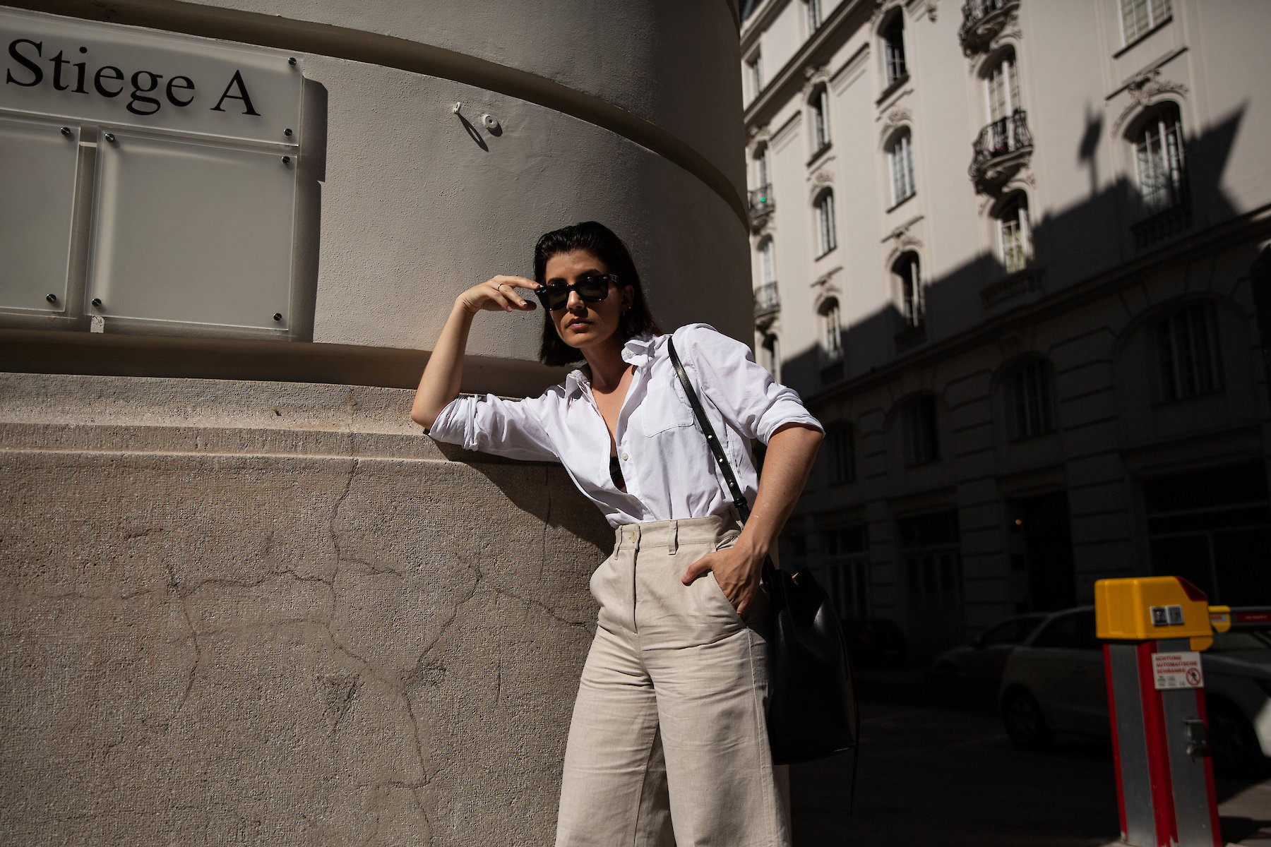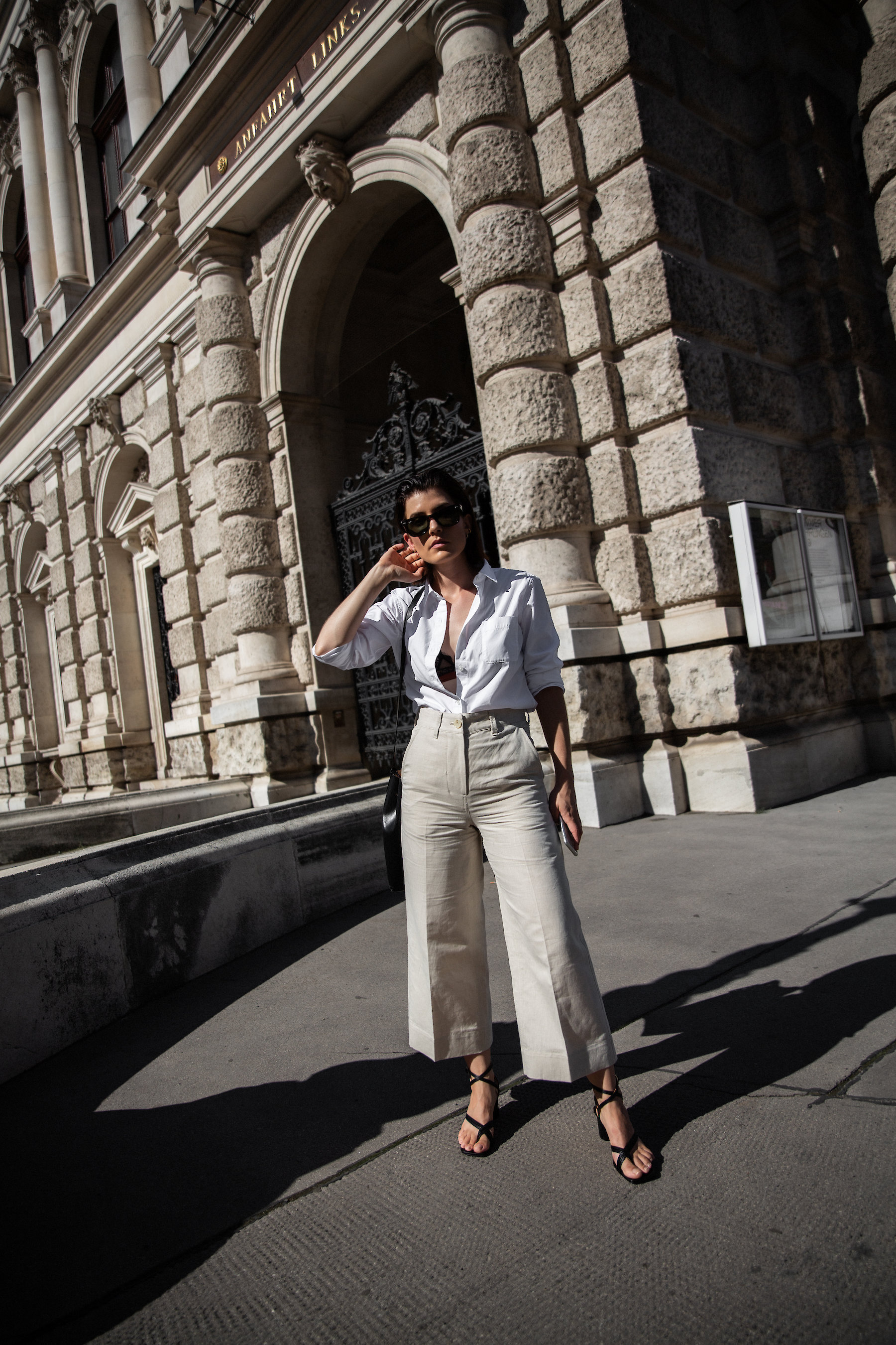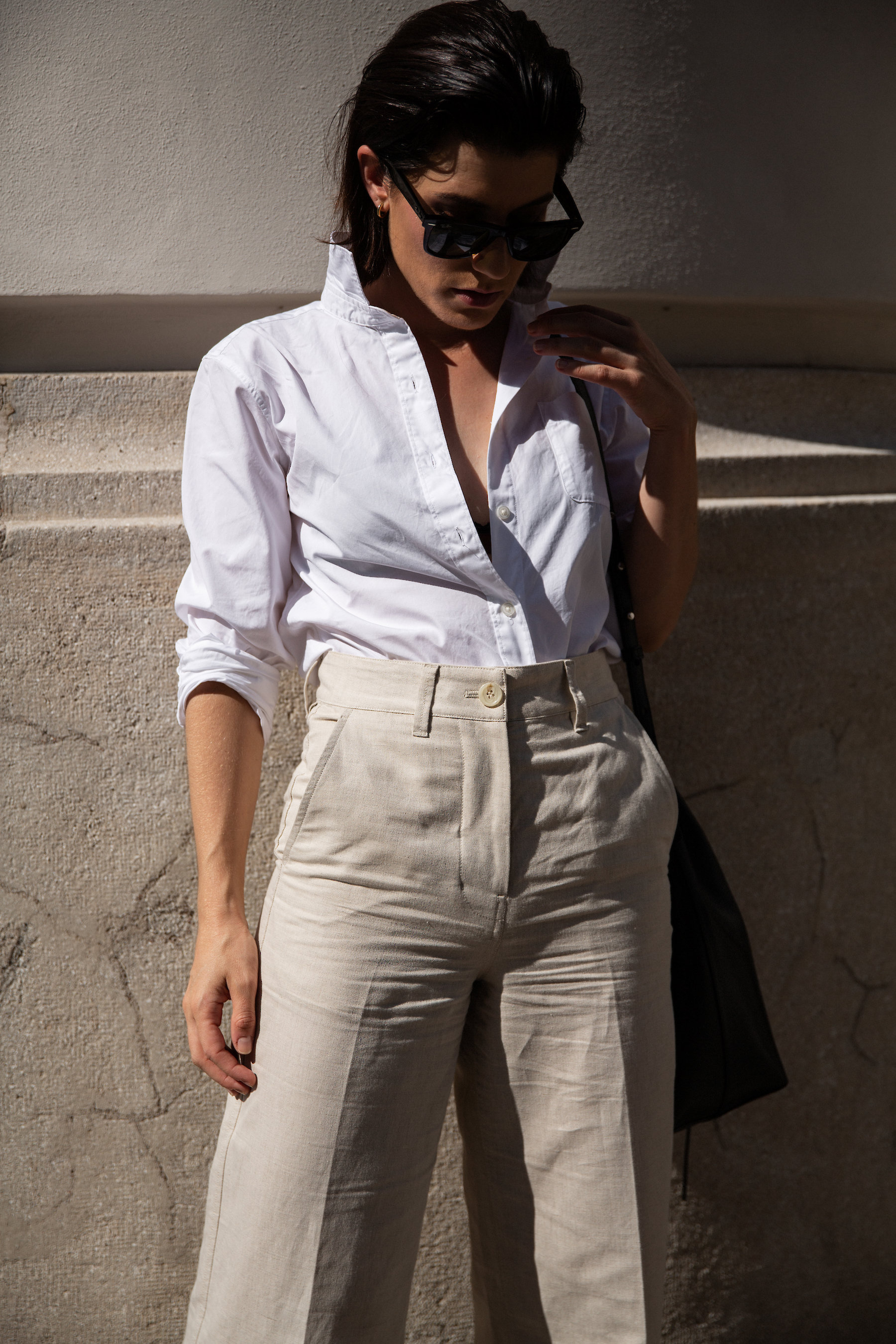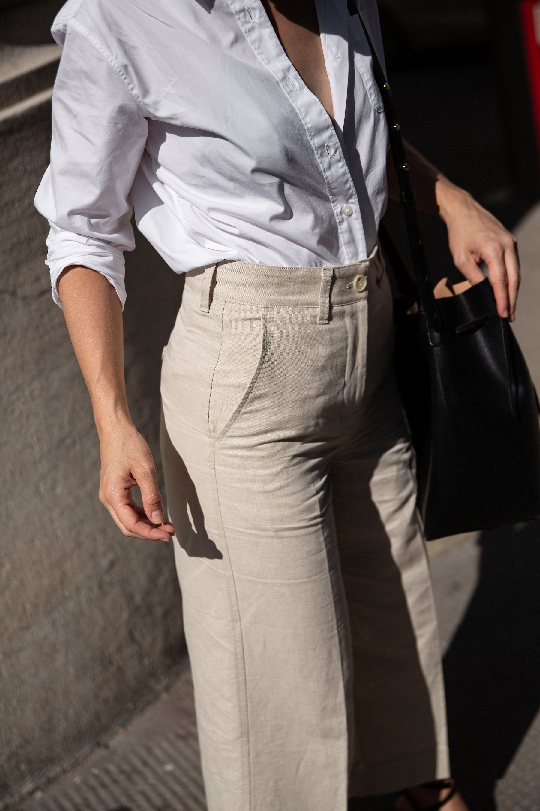 This boyish shirt tucked into these oatmeal colourd linen trousers is my idea of a summery office attire. Especially when paired with block-heel sandals (another new favorite on mine) and my beloved everyday bag.