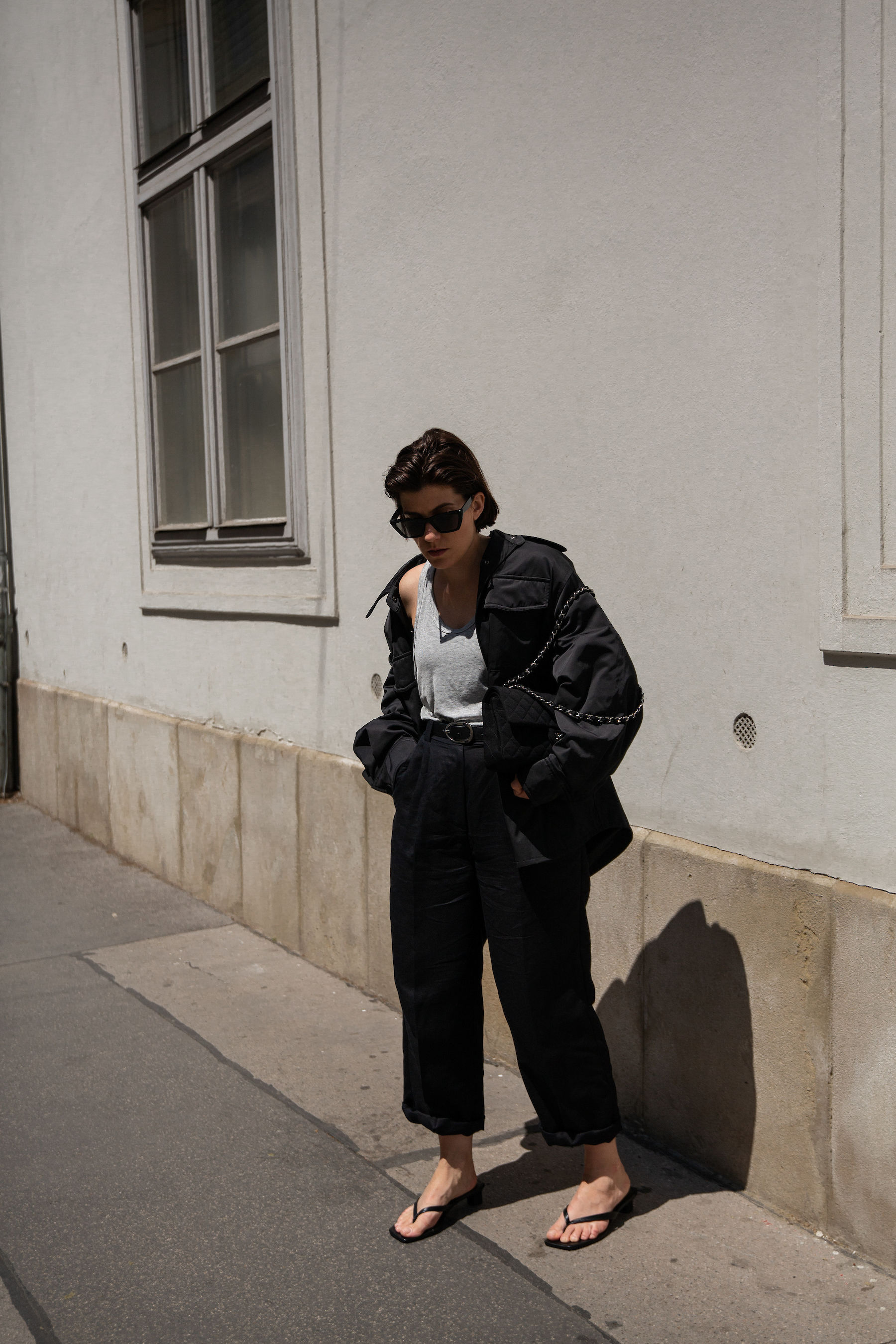 summer is not quite there yet, so this oversized jacket is my steady companion. the rest is airy linen, leather flip flops and a super soft tanktop.